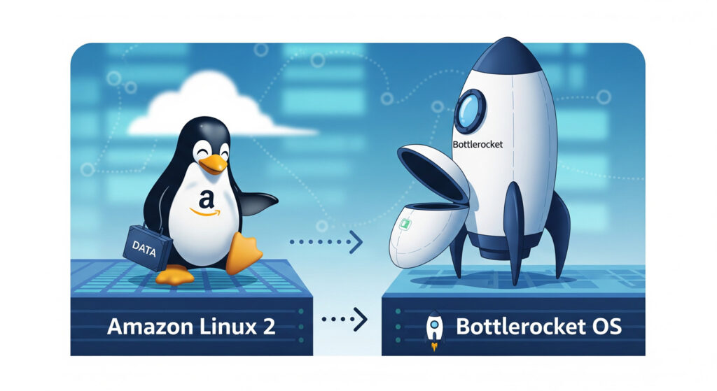 In my envionment, running Kubernetes workloads on Amazon EKS with Amazon Linux 2 (AL2) worker nodes is a tried-and-tested approach. It’s stable, compatible with most tooling, and offers the flexibility of a general-purpose Linux OS.